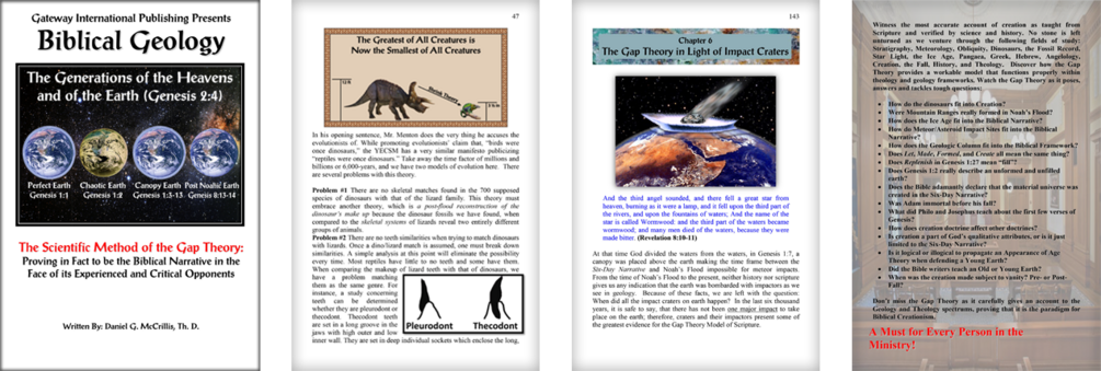 Witness the most accurate account of creation as taught from Scripture and verified by science and history. No stone is left unturned as we venture through the following fields of study: Stratigraphy, Meteorology, Obliquity, Dinosaurs, the Fossil Record, Star Light, the Ice Age, Pangaea, Greek, Hebrew, Angelology, Creation, the Fall, History, and Theology. Discover how the Gap Theory provides a workable model that functions properly within theology and geology frameworks. Watch the Gap Theory as it poses, answers and tackles tough questions: